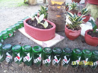 Recyling Bottles for Gardening November 03, 2009 Get link Facebook Twitter Pinterest Email Other Apps My dad found good use of the alcohol (cuatro y cantos) and 7-up bottles for his garden... Comments Hybrid Hopes said… I love that. The green in the 7 Up bottles highlights the green in the plants too. Peacefully*Chaotic said… Wow that is very creative and it looks very pretty!My name is Carly4Peace from swap-bot and one of your partners for the be my blog follower swap.Following you now!Have a great week! shafarina said… Creative! But looks good.