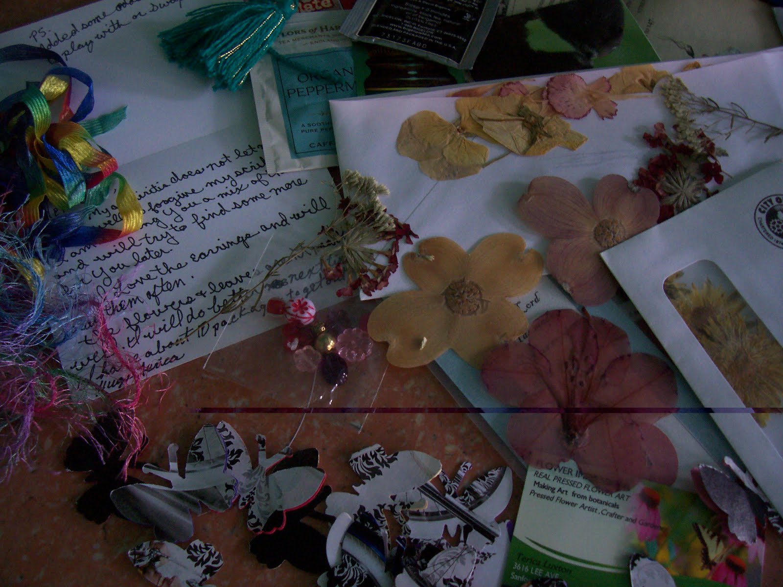 I was listing upcycled gothic butterflies at my etsy shop when Terica's gifts arrived! It went from a previous residence to my third (from then). What a way to complete a day!