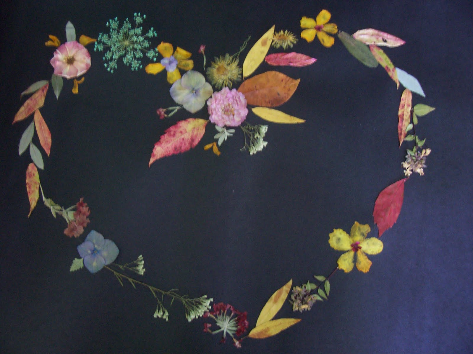 Finally, I found time to start work on the gifts of Pat Smith and Terica Luxton, dear friends from World Wide Pressed Flower Guild. Created a heart with the flowers. The laminated flowers Terica sent, I created an asymmetrical necklace.