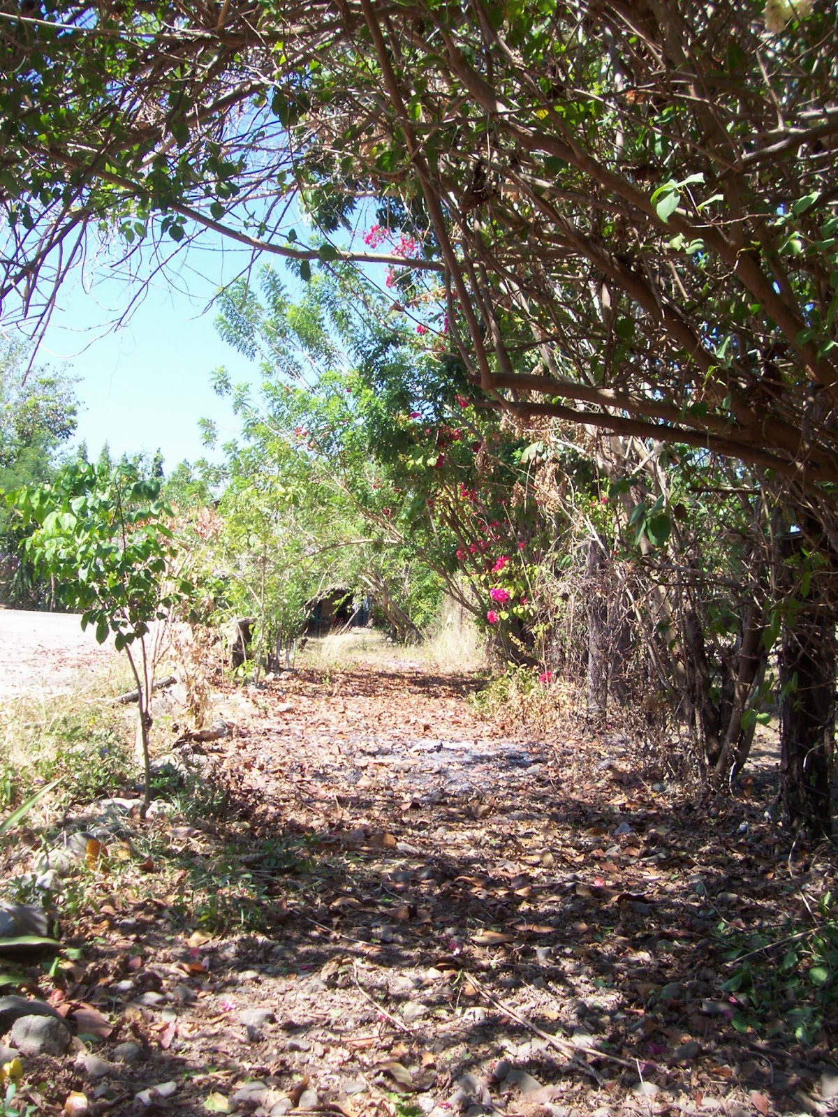 Creating a trellised pathway to my hut... hopefully one day... (dry season view)