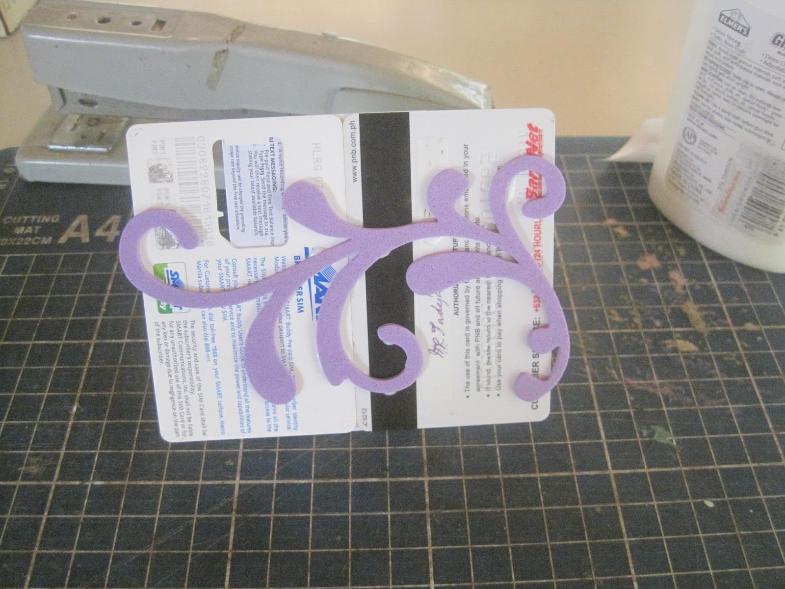 | If your rubber shape is bigger than 1 phone card, stick the "T" on 2 phone cards arranged carefully side by side. |