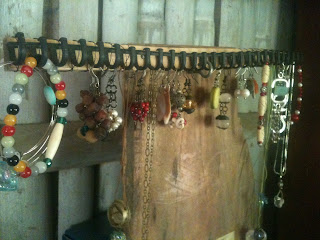This is a dismembered plastic spring binder turned into jewelry organizer. One of my most recent favorites.