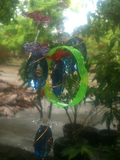 I have recently focussed on garden beautification so, I can't help it when I got fascinated with stakes, sun catchers, and totems, and all garden art - incorporating recycling, of course.