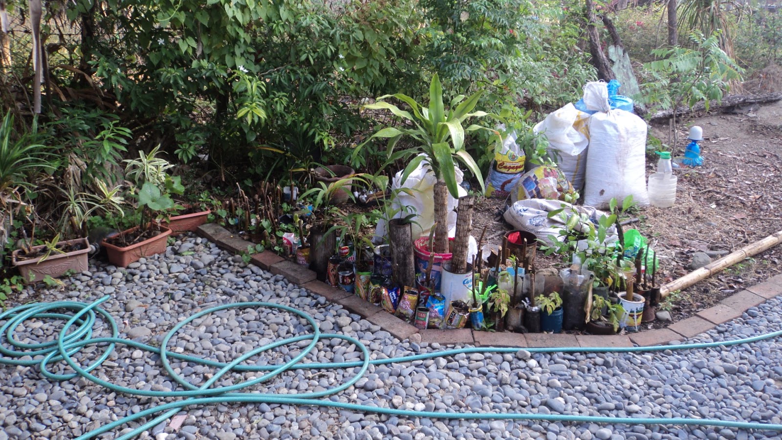 This is my nursery. I need to cultivate most of my plants in containers because of my neighbors' free-range chicken. If the plants grow bigger, then, I transfer them in land, or more permanent containers.